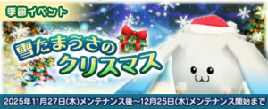 こんばんわー!ヾ(´∀`)ノ 心椛です。 今回のメンテナンス後から新しい雪たまうさのクリスマスが開催されました。 雪たまうさは大梁商店街の青い丸の ...