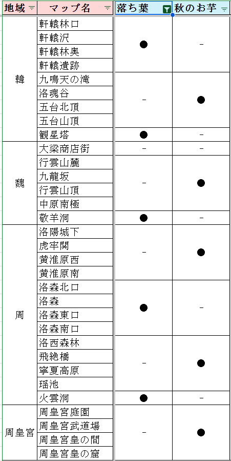 今回も師団員の方に協力して頂き、どのマップでアイテムが入手可能なのか